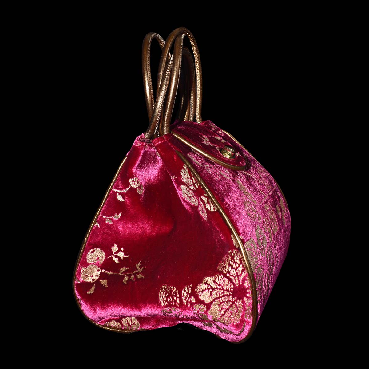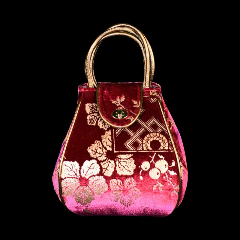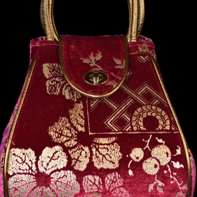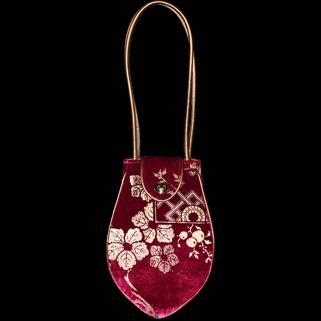 This Moretta is a hand printed velvet bag with metal.
