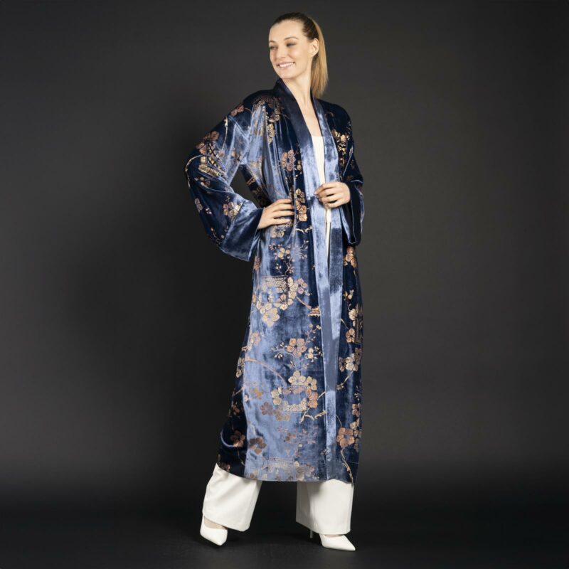 Be the first to review “Audrey | Printed velvet Long Kimono coat | Riassunto Blue”