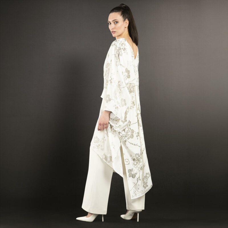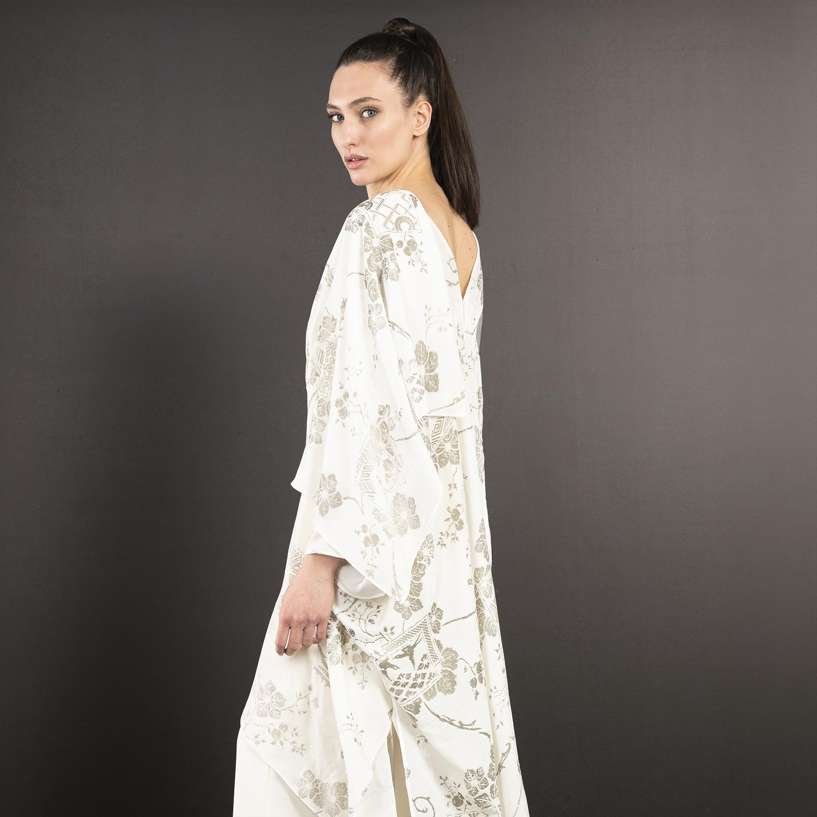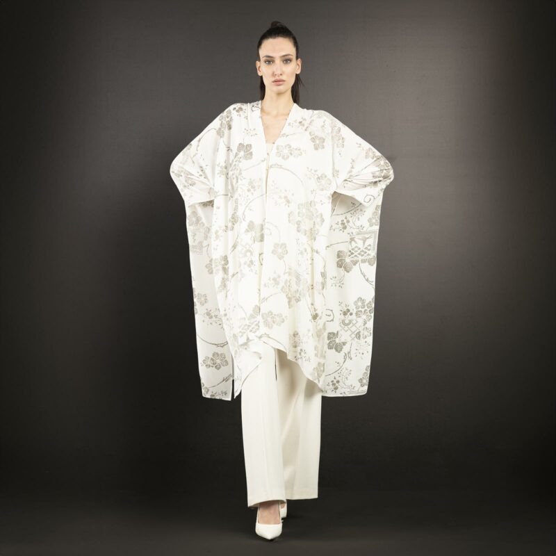 Daphne | Printed velvet Long evening coat | Riassunto White