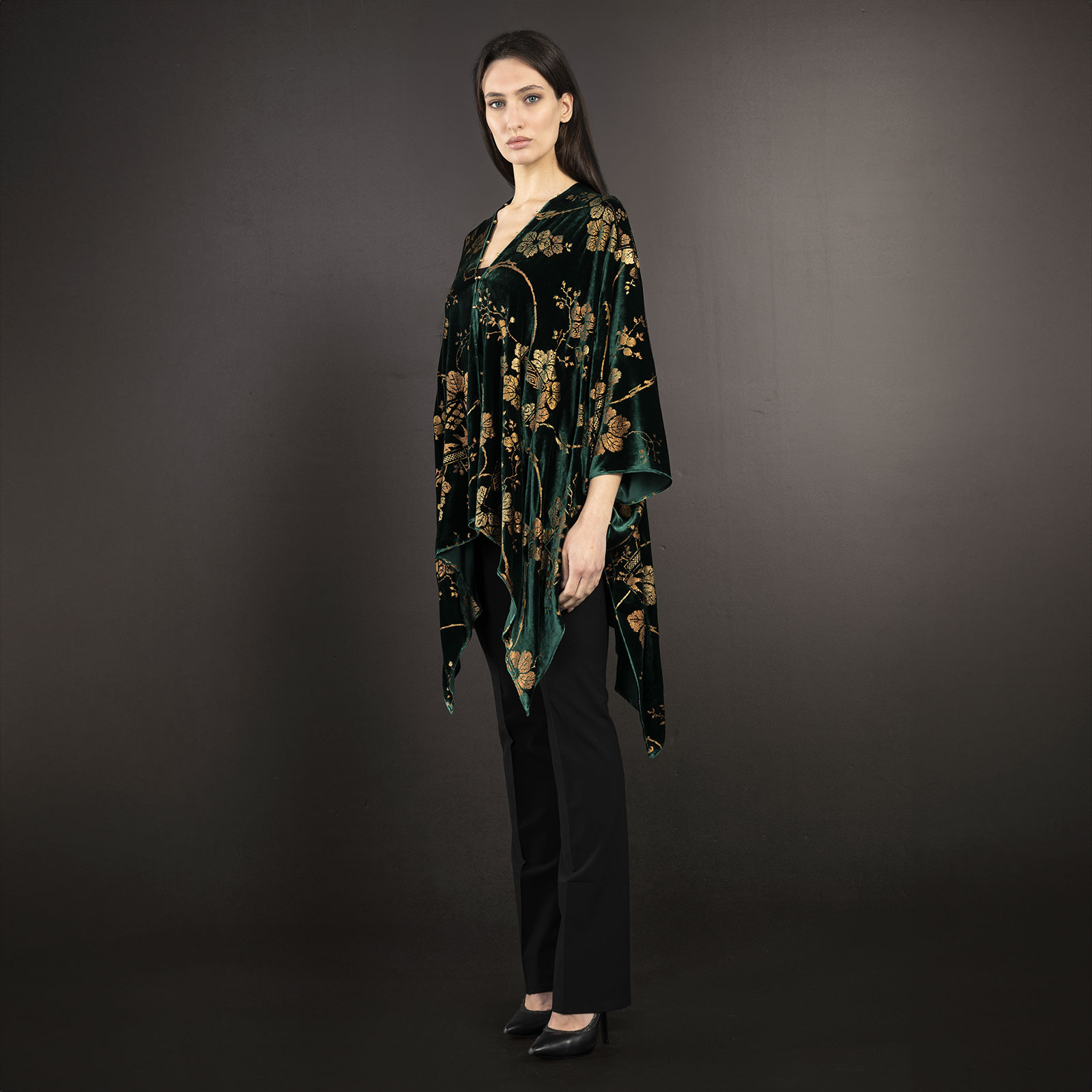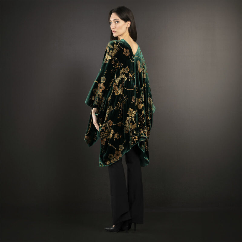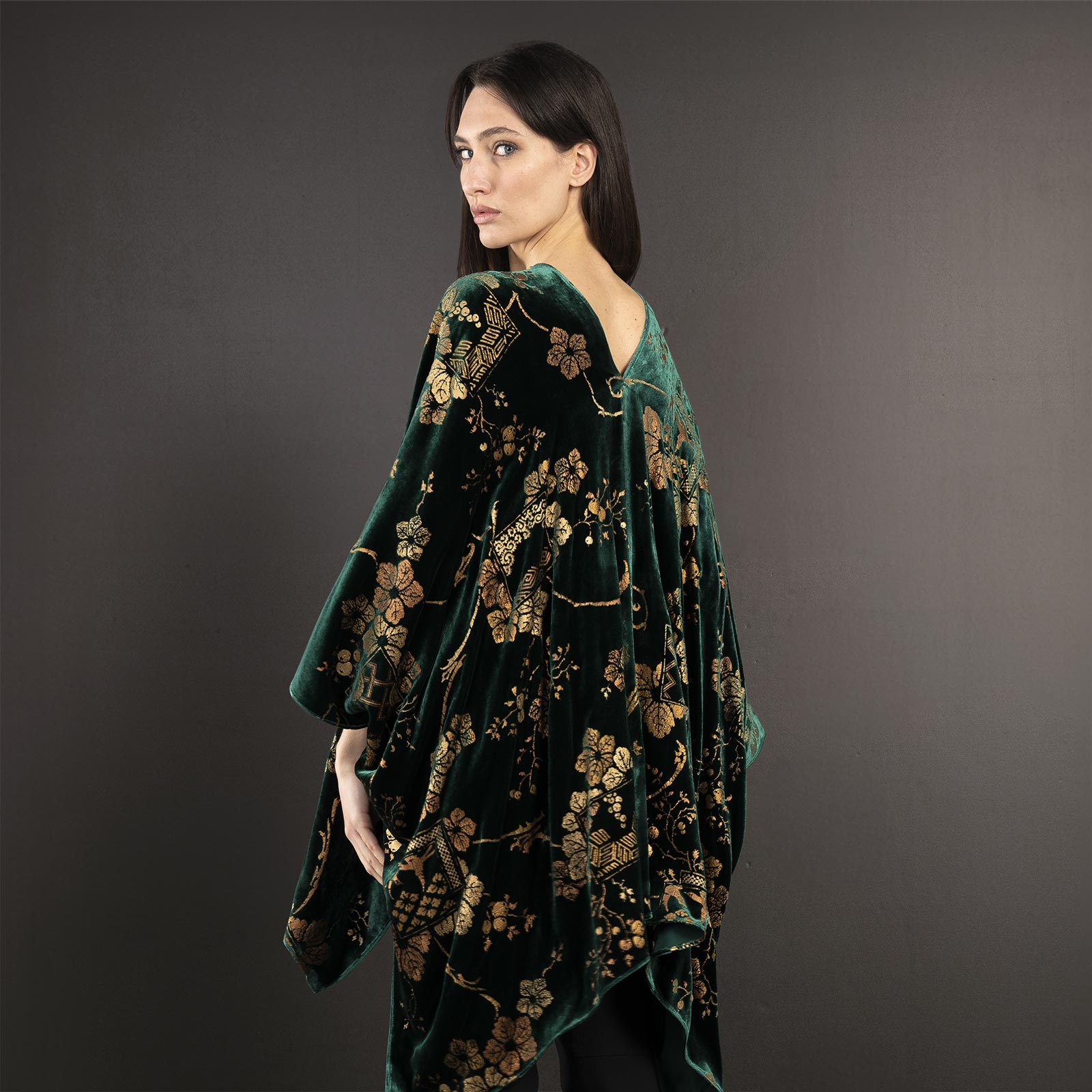 This short printed velvet evening wrap is based on Mariano Fortuny’s style and techniques.