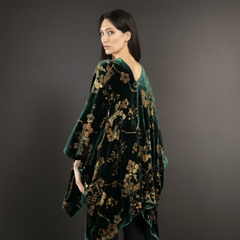 Helena | Printed velvet Short evening coat | Riassunto Fir green