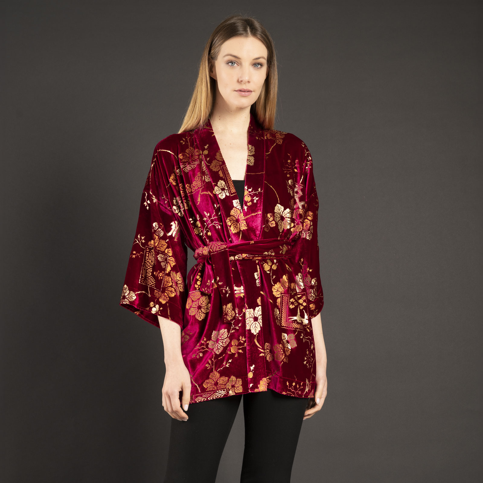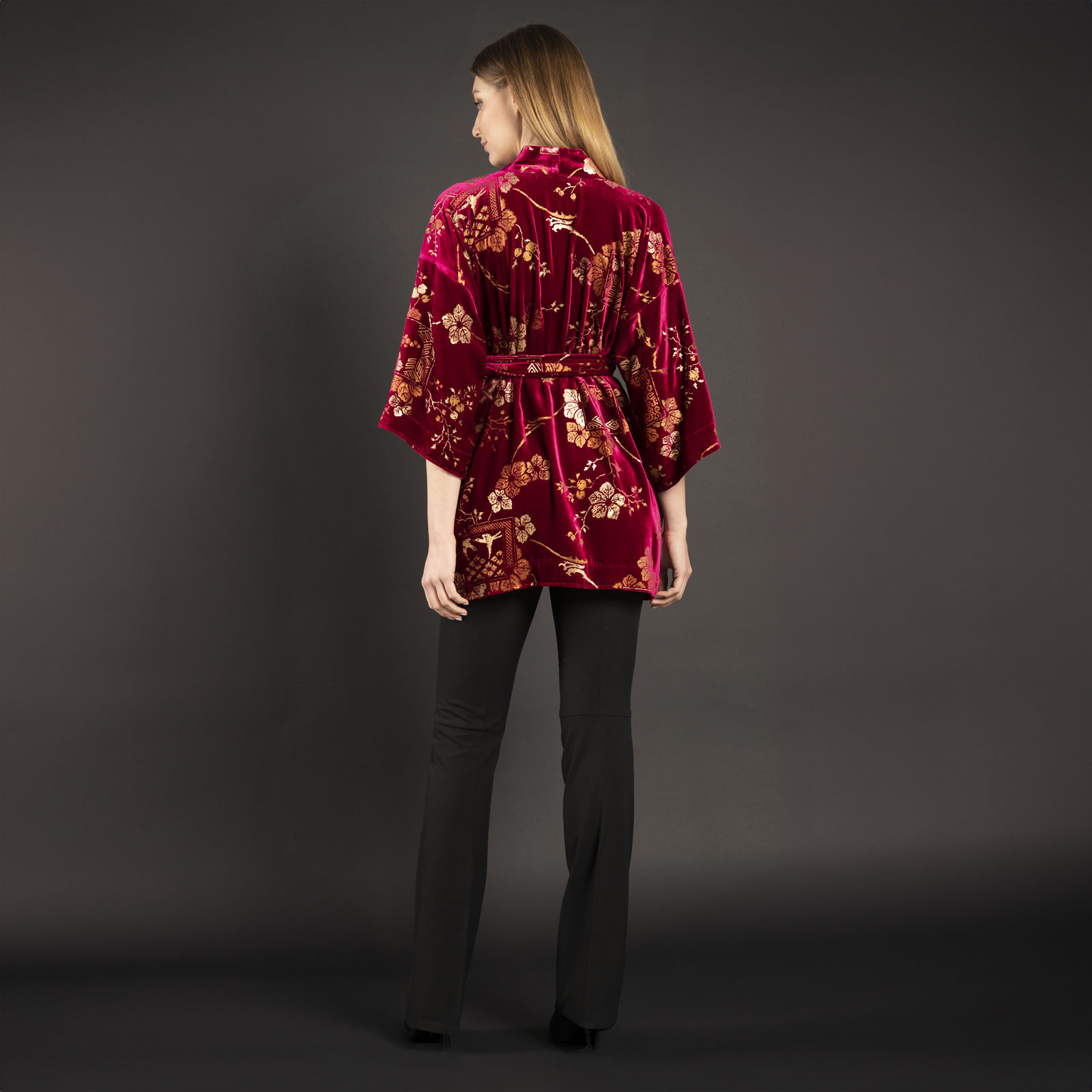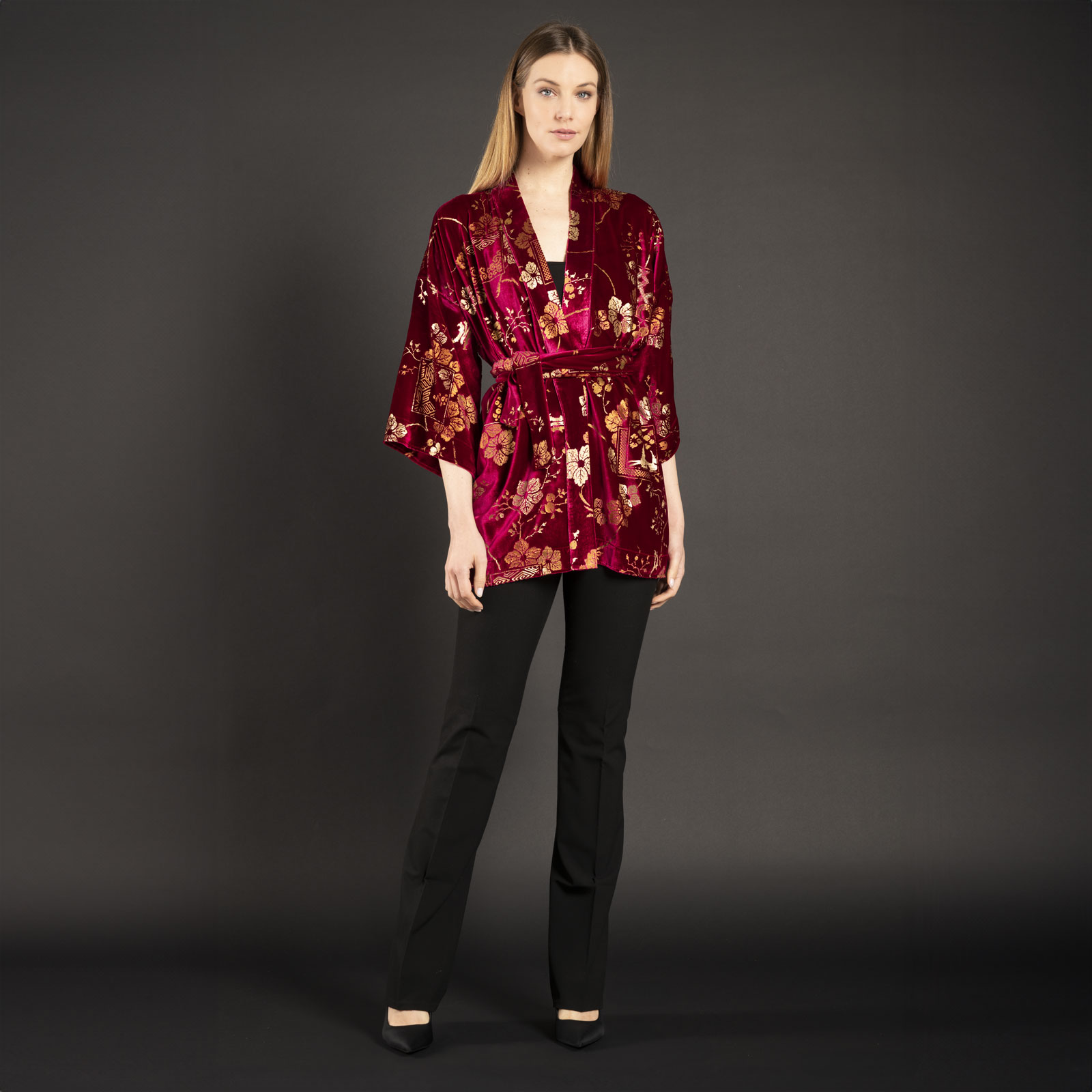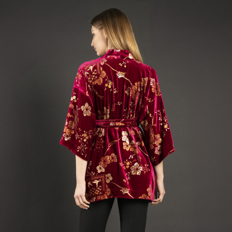 Be the first to review “Iris | Printed velvet Short kimono Coat | Riassunto Magenta”