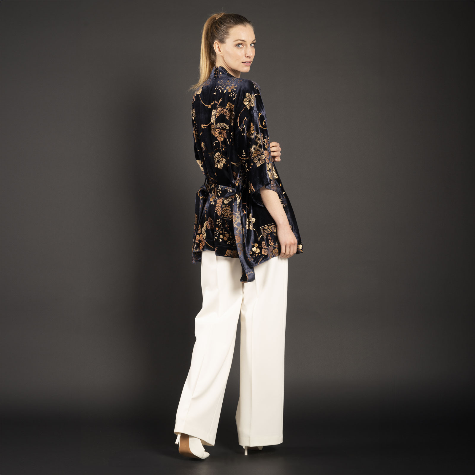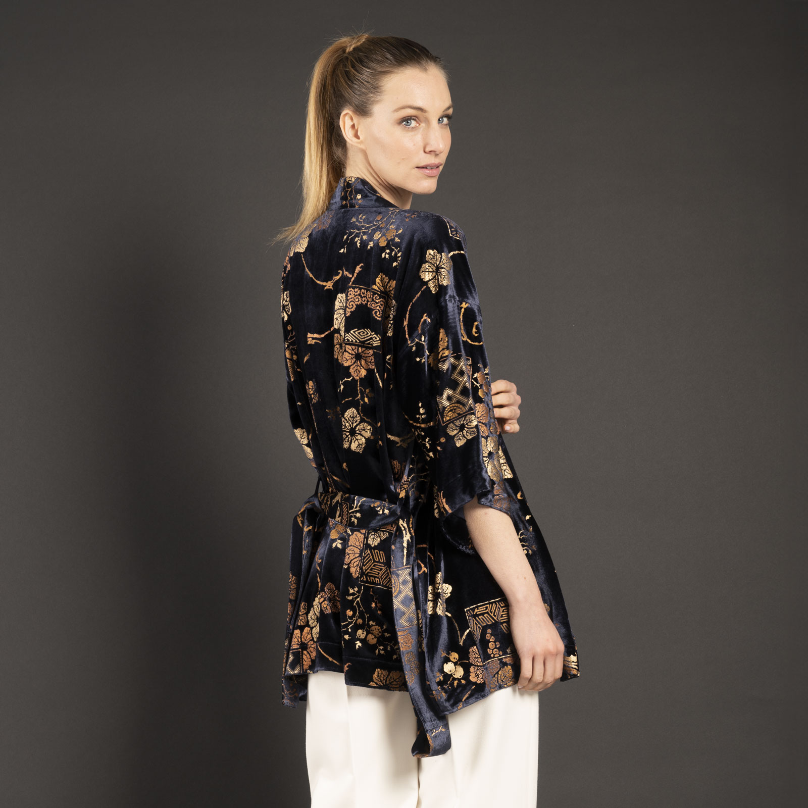 Be the first to review “Iris | Printed velvet Short kimono Coat | Riassunto Blue Navy”