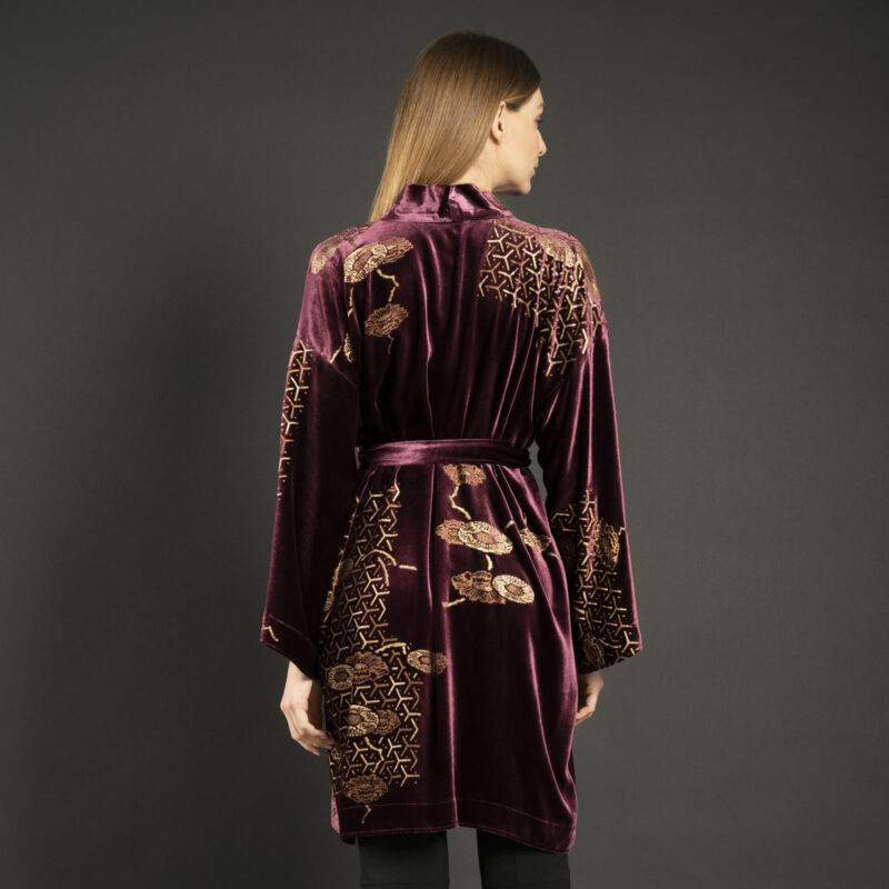 Be the first to review “Isabel | Printed velvet Kimono Coat | Japan Aubergine”