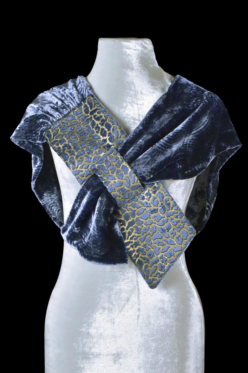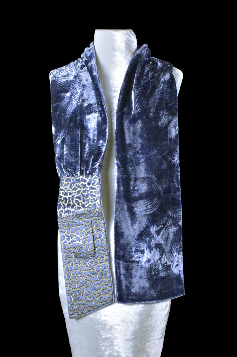 Furrowed velvet scarf with printed detail | Briciole Blue Gray