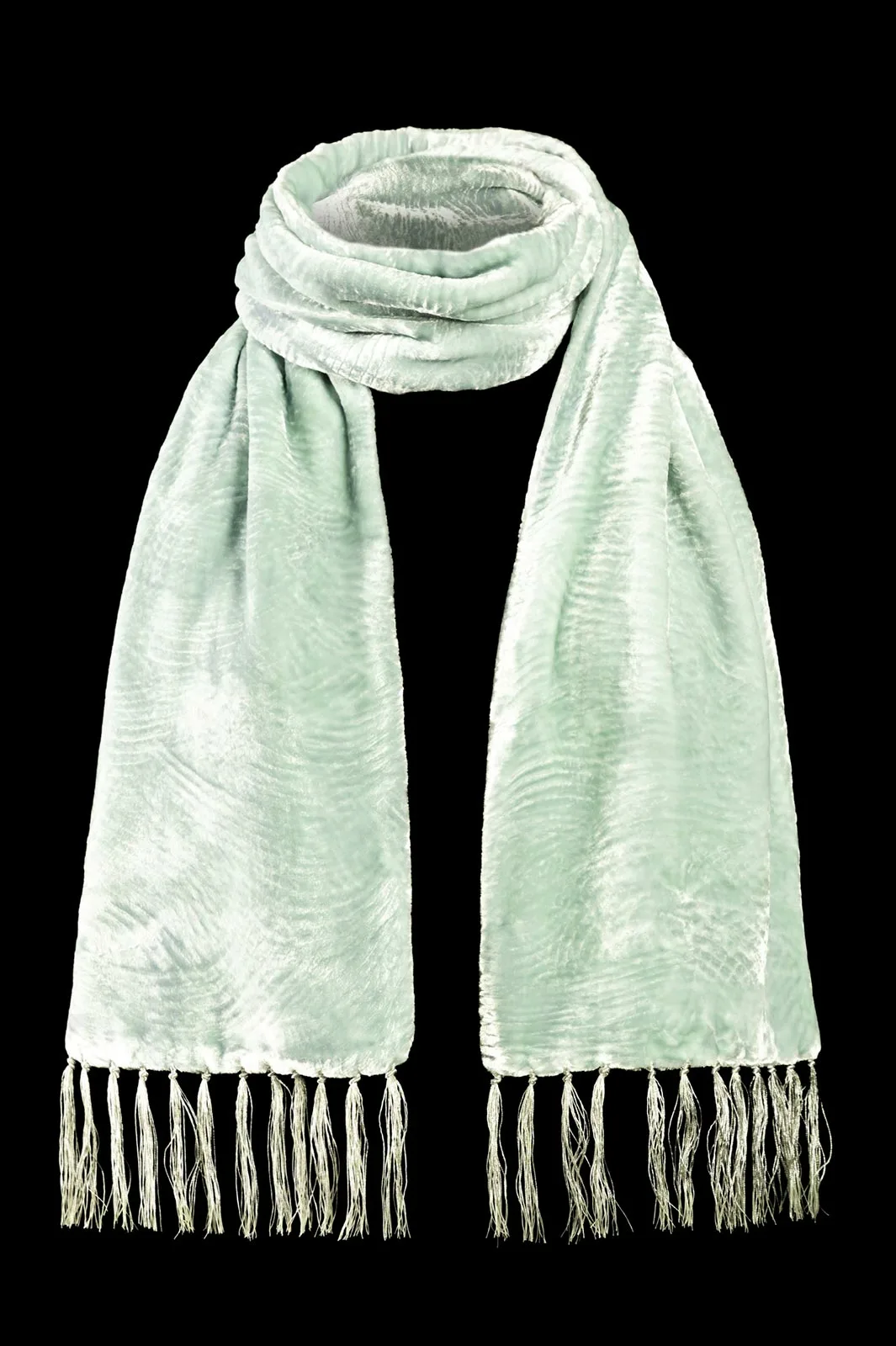 Furrowed velvet scarf with fringes | Opal