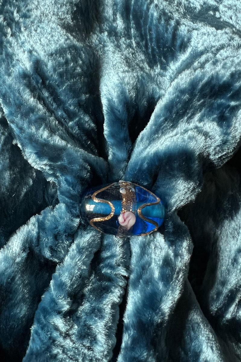 Be the first to review “Furrowed velvet scarf with Murano glass beads | Candy blue”