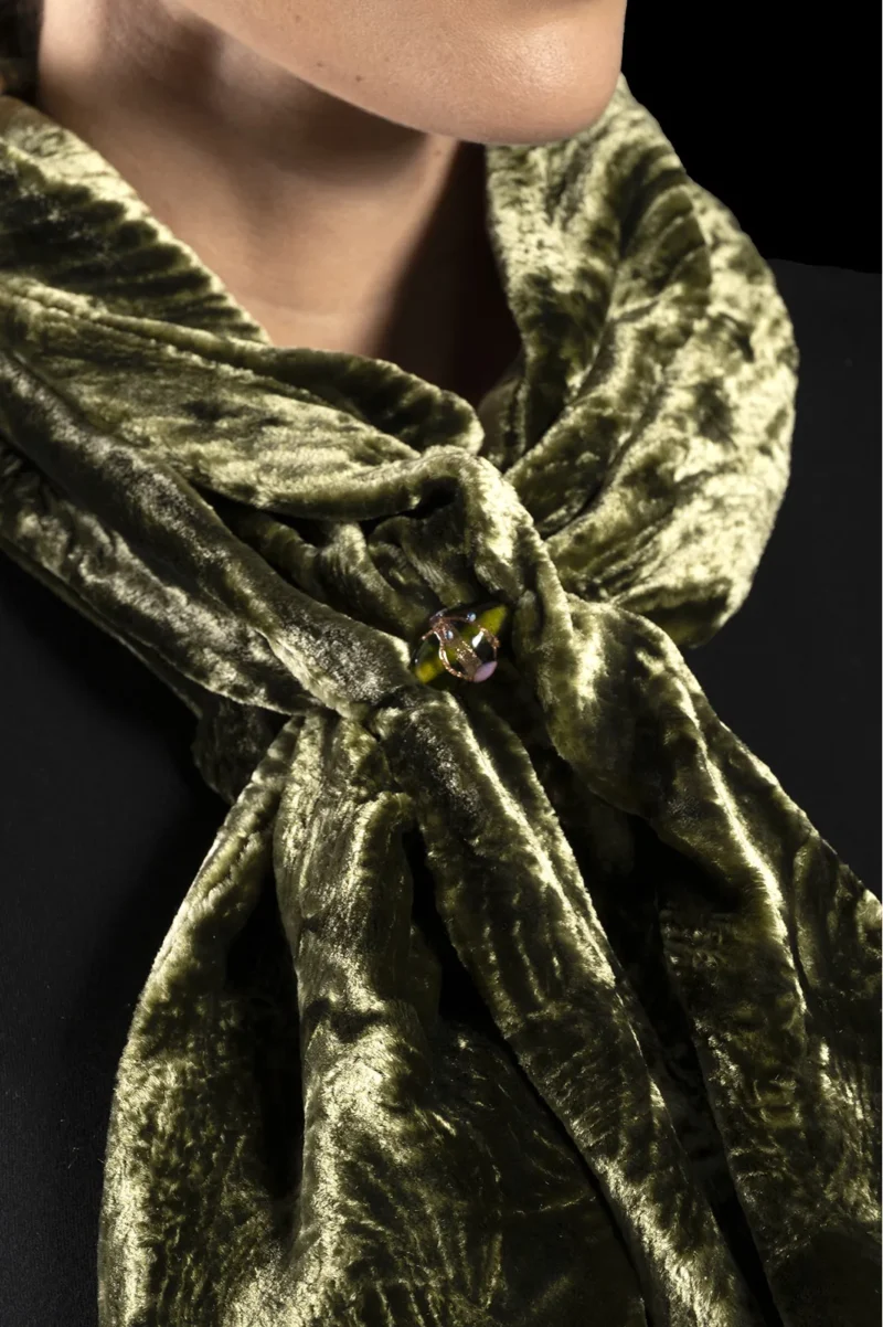 Be the first to review “Furrowed velvet scarf with Murano glass beads | Olive green”