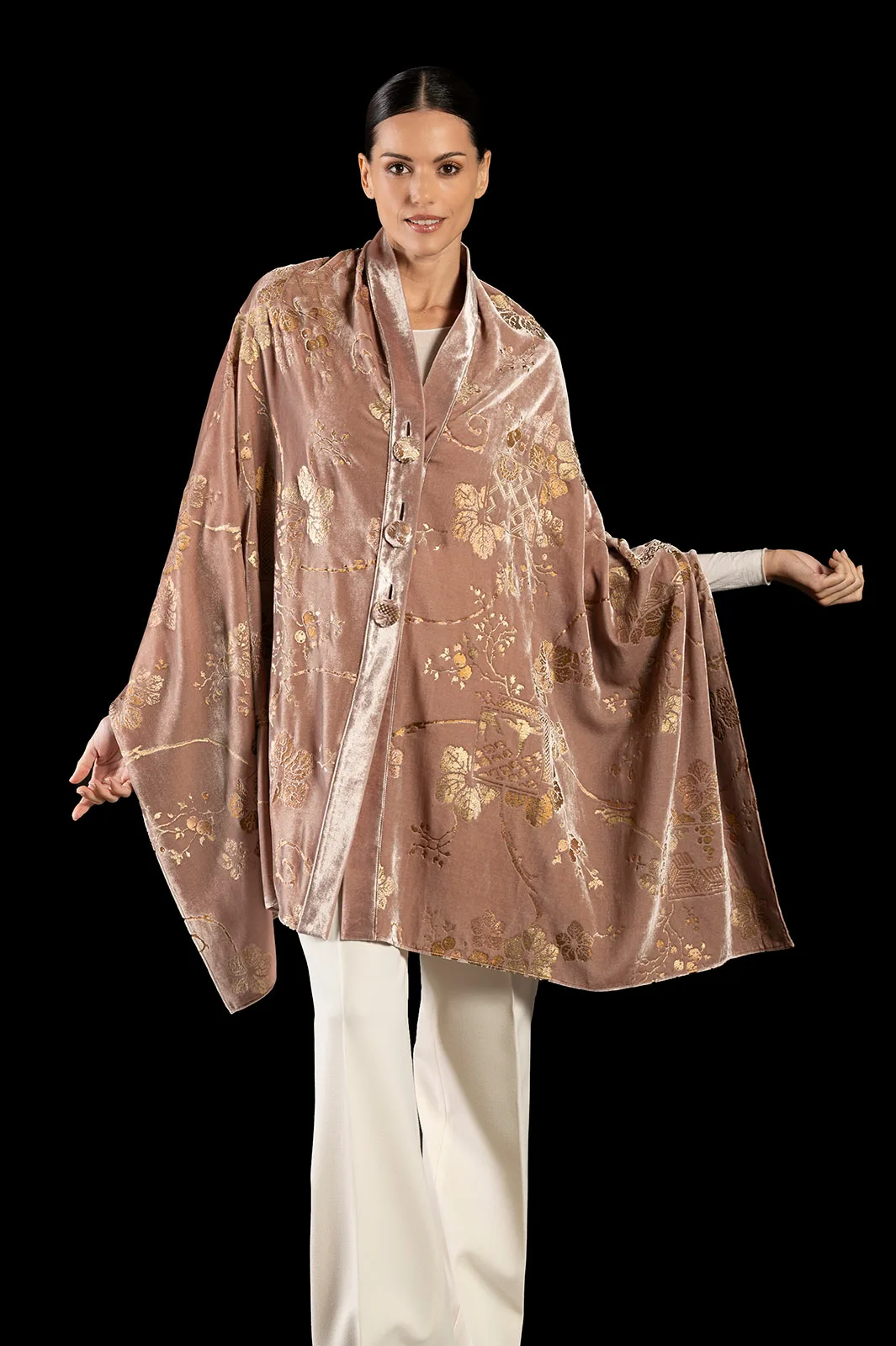 Minerva | Printed velvet stole with buttons | Riassunto Powder Pink