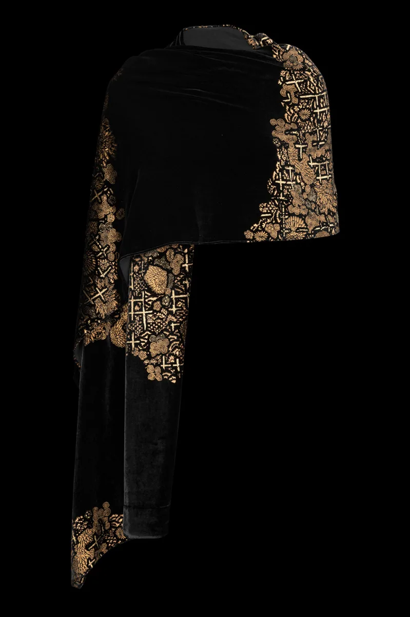 Printed velvet shawl | Crisantemi Black