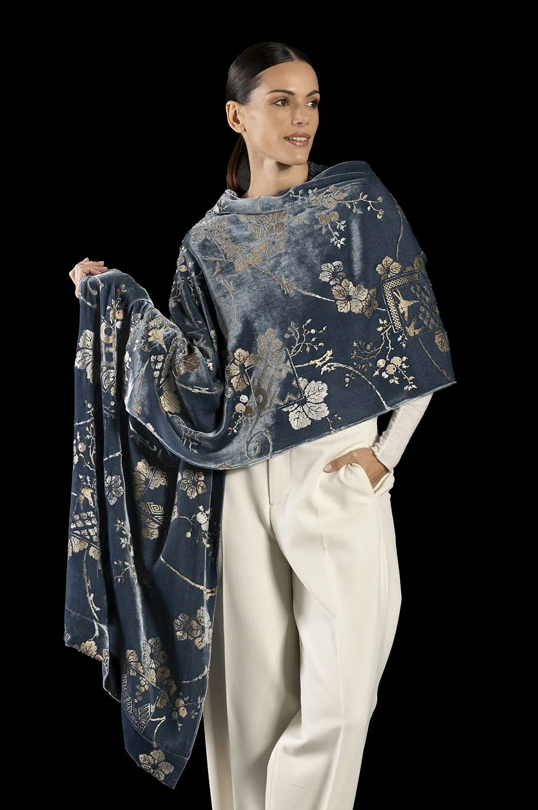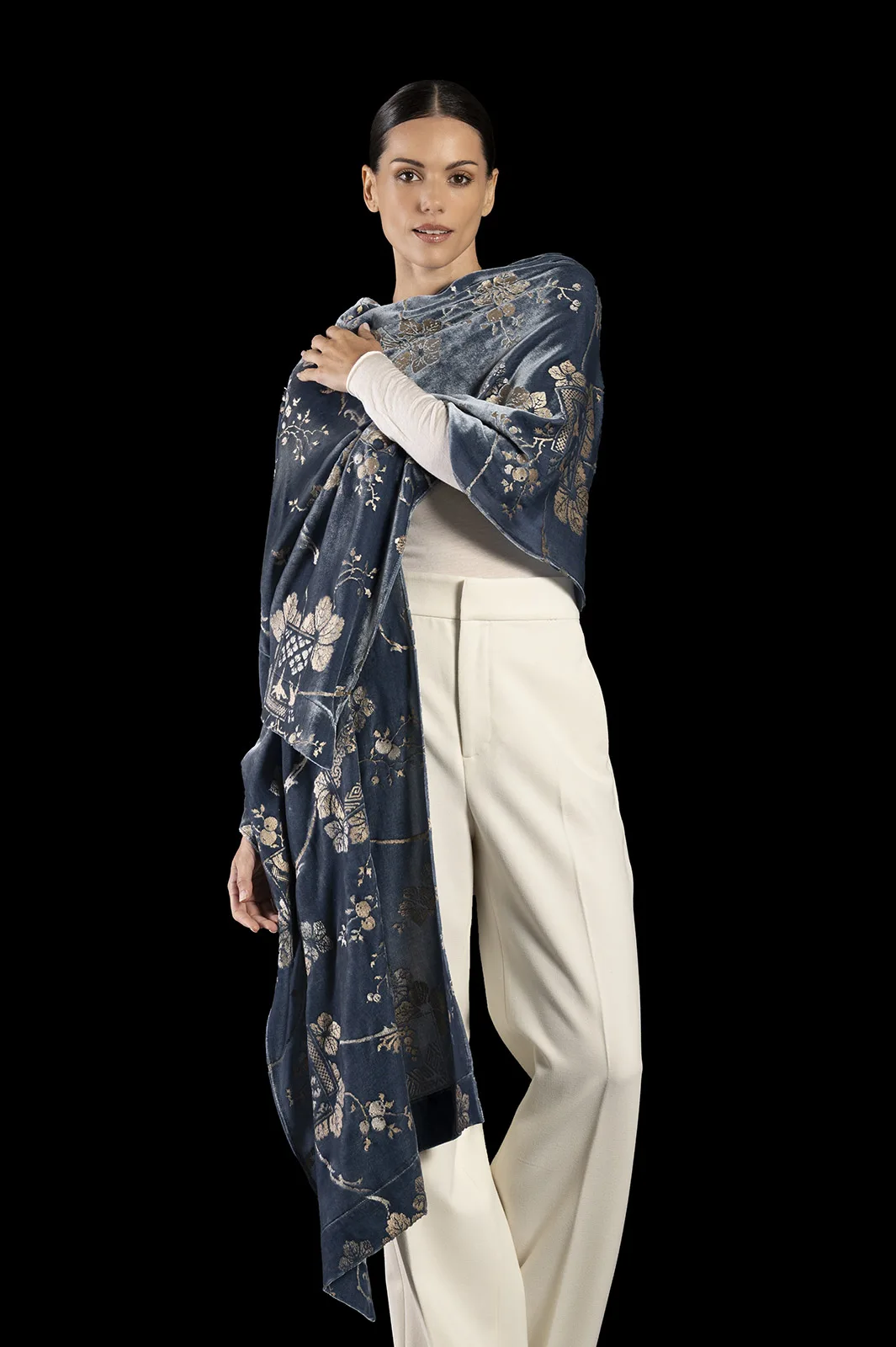 Be the first to review “Printed velvet shawl | Riassunto Candy Blue”