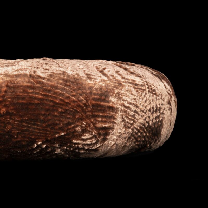 This cushion has a 40cm diameter, silk velvet fabric, 100% natural goose filling.